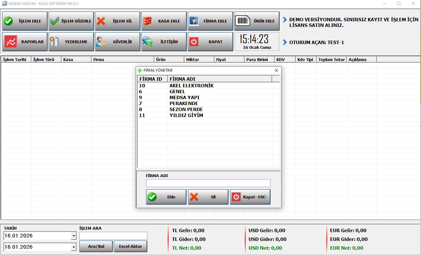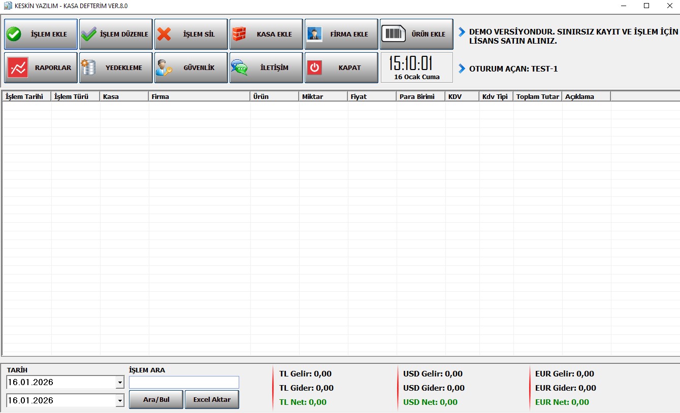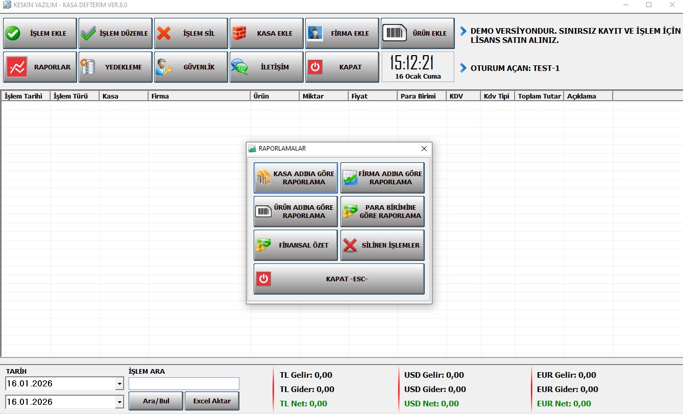 Kasa, Firma, Ürün, Para Birimi bilgilerine göre detaylı raporlama. Excel Aktarım.