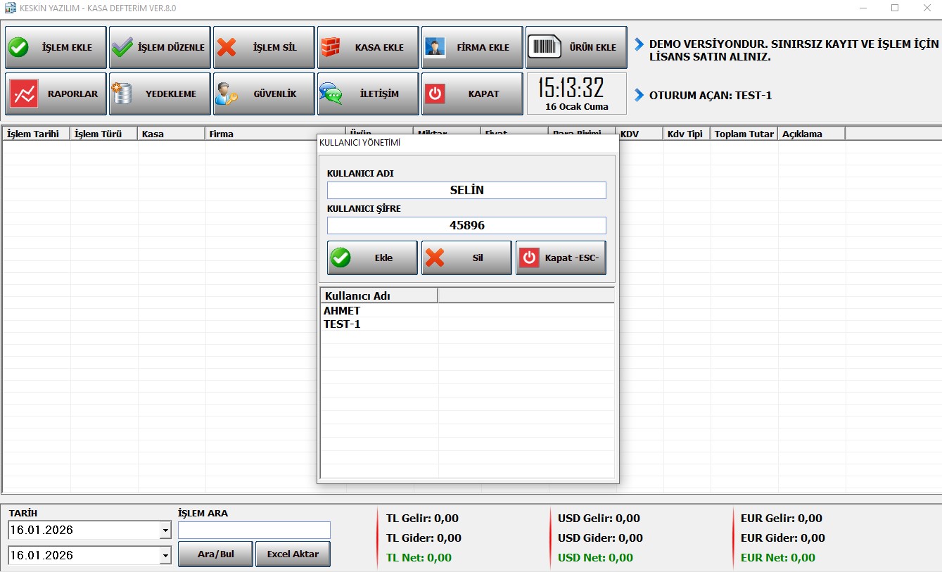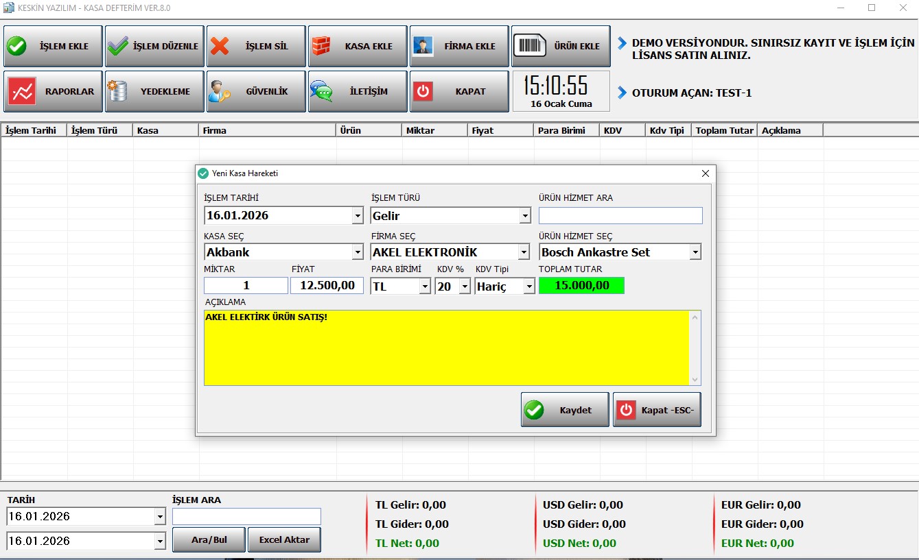 Tüm kasa hareketlerinizi düzenli ve hızlı şekilde kaydedin.
